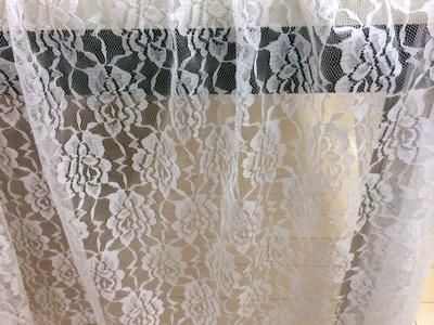 カーテンなどインテリアにも使用できるレース生地です。濃い色の生地と相性ばっちりです★